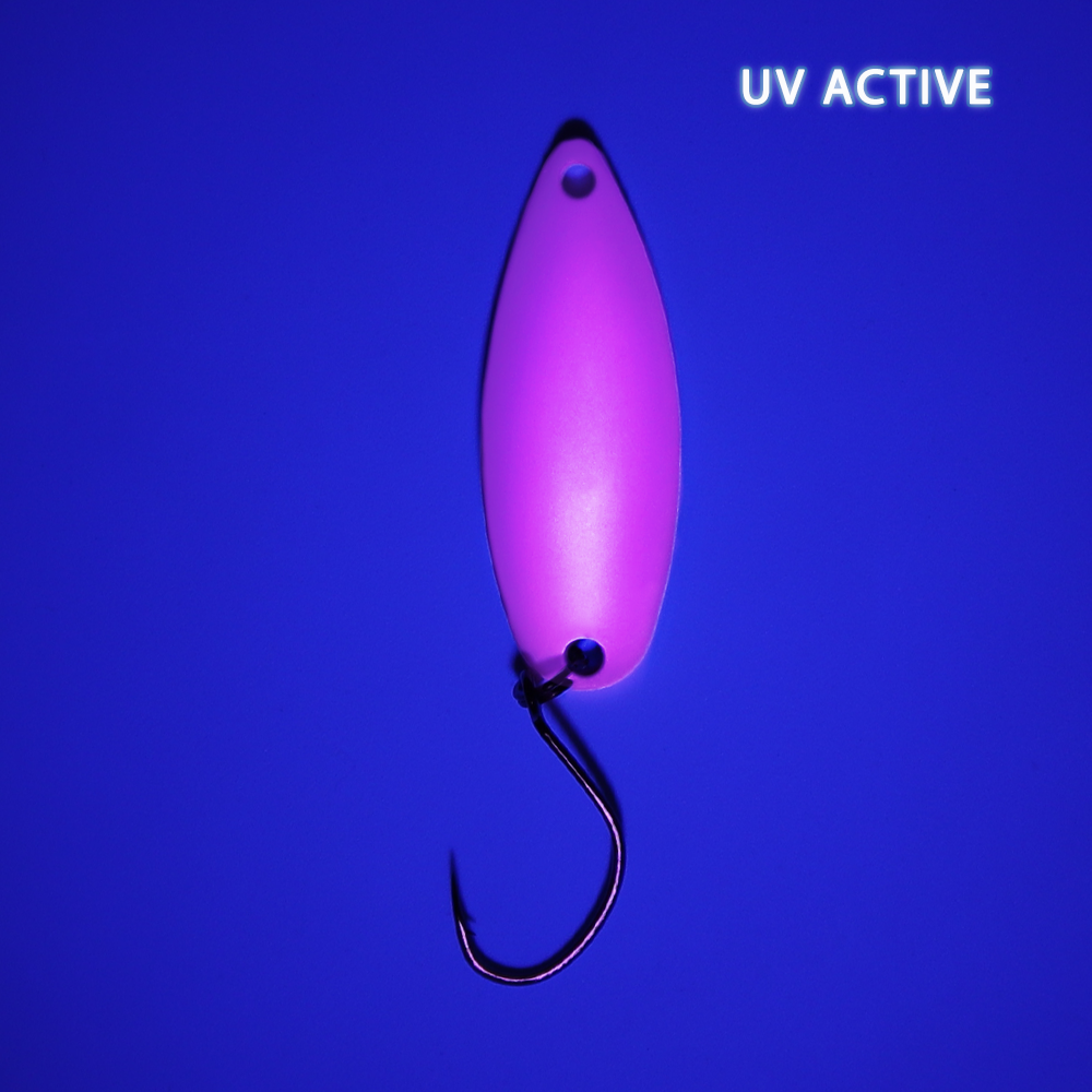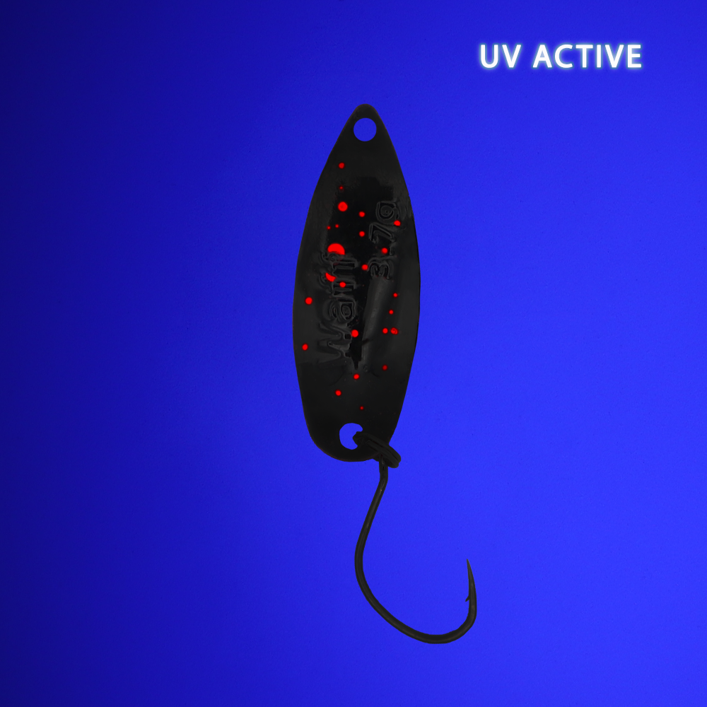 Der Trout Jara Waff 3,7 g ist ein Spoon, der seinen Namen verdient, ein echtes Multitalent. Seine durchdachte, perfekt ausbalancierte Form sorgt dafür, dass er sowohl aktive als auch passive Forellen zuverlässig anspricht. Bei einer gleichmässigen, ruhigen Führung entwickelt der Waff 3,7 g ein attraktives, hochfrequentes Laufverhalten, das die Fische anlockt und zum Biss reizt. Zusätzliche Reize setzt er in den Absinkphasen: Kurze Pausen lassen den Spoon verführerisch taumeln und erhöhen die Fangchancen noch einmal deutlich.